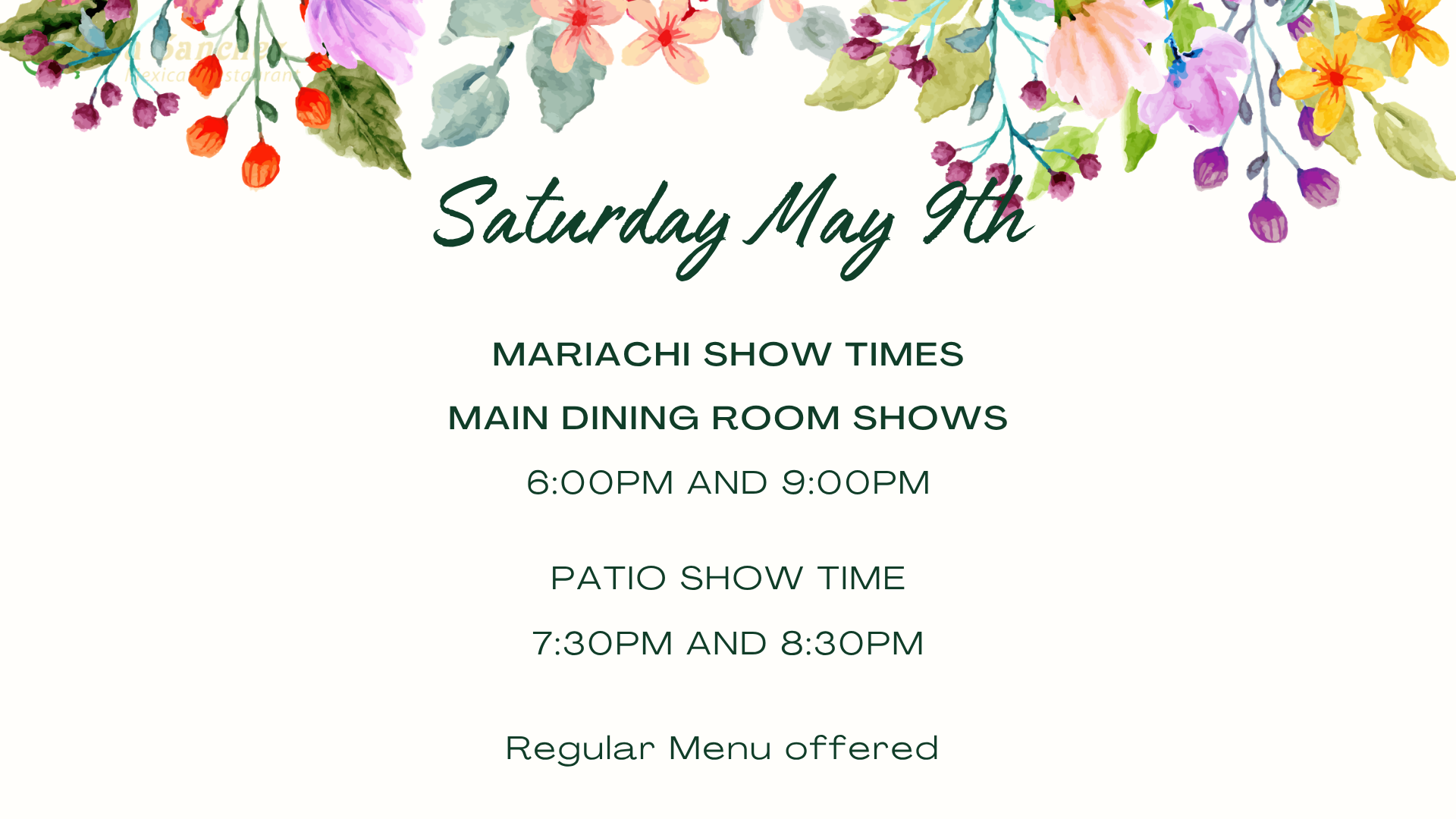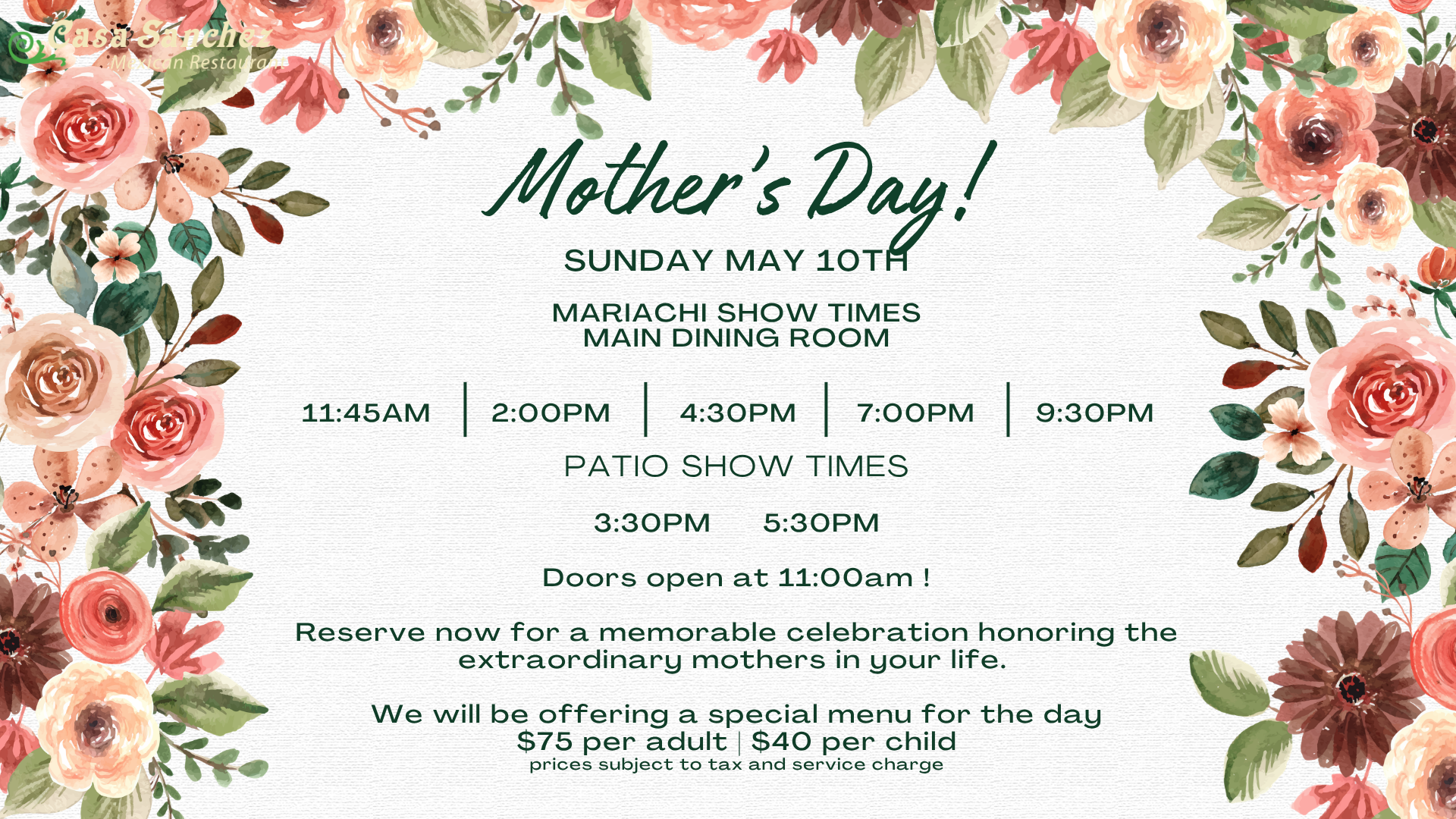 Mother's Day Menu